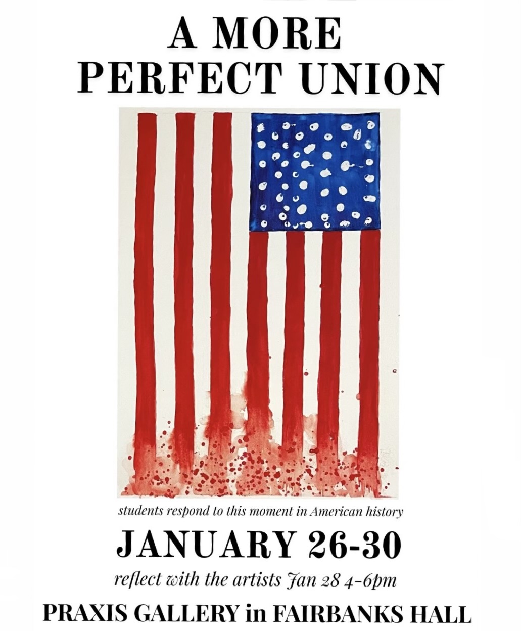 OSU art student exhibition in Fairbanks Hall. Responses to this moment in American history. Now through February 6. Open to the public 8 am to 4:30 pm M-F.