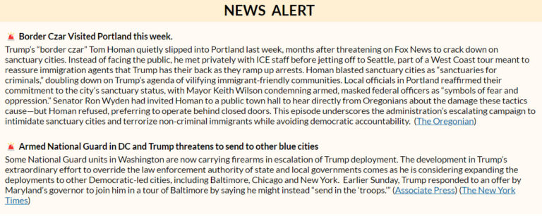 The recent news — violence blamed on the left, troops sent to Tennessee, fight for health care, California says enough to masked goons. This week, the country hurtles deeper into political violence and authoritarian targeting. In the wake of…