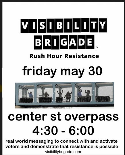 VISIBILITY BRIGADE – OVERPASS BANNERS ACROSS THE USA Date: Friday, May 30th Time: 4:30 pm – 6:00 pm Location: Center Street Overpass in Salem (see map for peaceful protest location and parking detail) Banner Message: Oregon Fights Fascism Purpose: Rush…