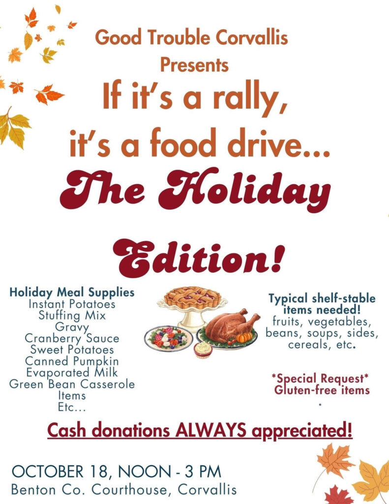 Ideas for Food Drive – to bring to the Protestindivisiblebc Benton-CountyTuesday, October 7, 2025Campaigns, Community, Contribute, Food Drive, Local, Solidarity
